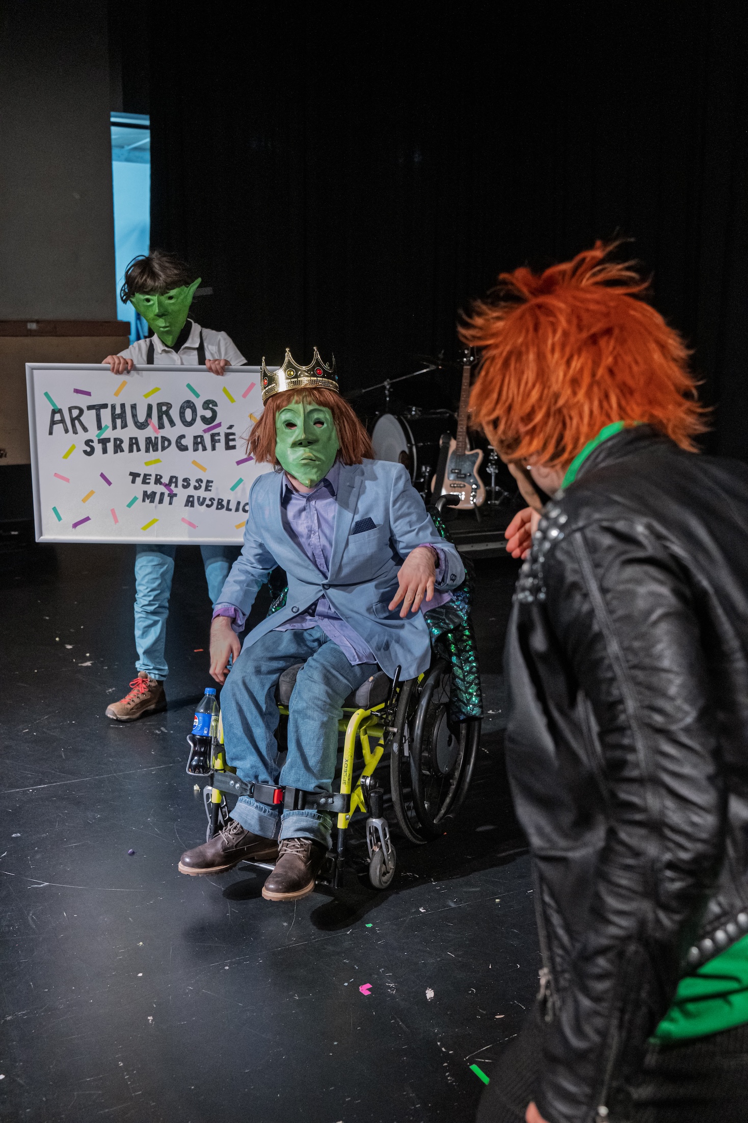 Der TheaterJugendClub hat alle im Stück verwendeten Masken selbst gebaut und war an der Entwicklung der Kostüme beteiligt.