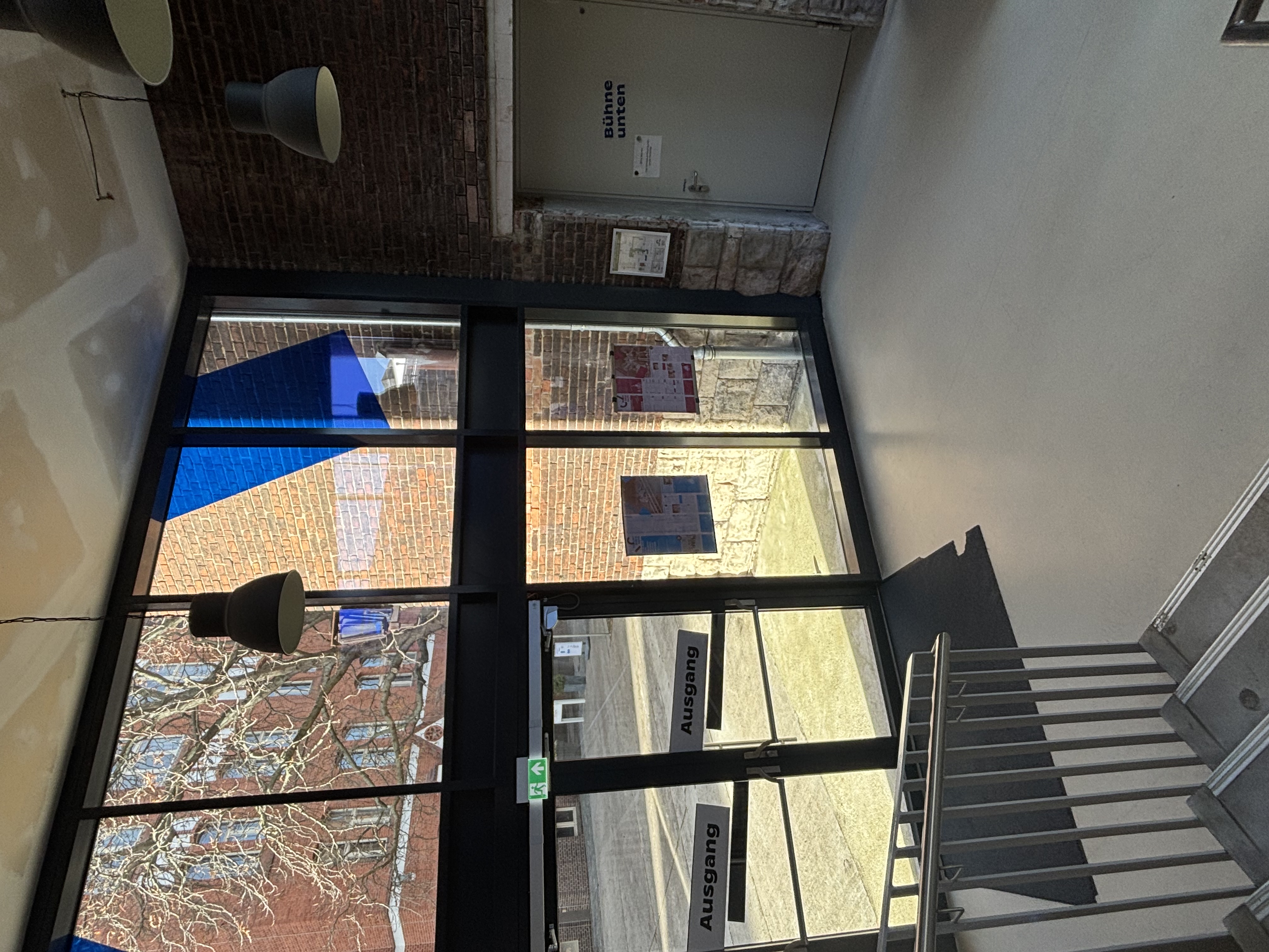 Der Zugang zu unserer Studiobühne im Kulturhaus Schöneberg ist mit Rollstuhl mit Hilfestellung möglich. Je nach Bühnenbild kann der Zugang über eine Rampe über den allgemeinen Zuschauer*innen-Eingang oder über einen Eingang mit niedriger Stufe über die Bühne erfolgen. Plätze für Rollstuhlfahrer*innen haben wir in der ersten Reihe. Unsere Mitarbeiter*innen unterstützen dich gerne. Die Toiletten im Kulturhaus Schöneberg sind leider nicht barrierefrei. Sie sind nur über eine Rampe mit Hilfestellung zugänglich und zu eng für die meisten Rollstuhlfahrer*innen.