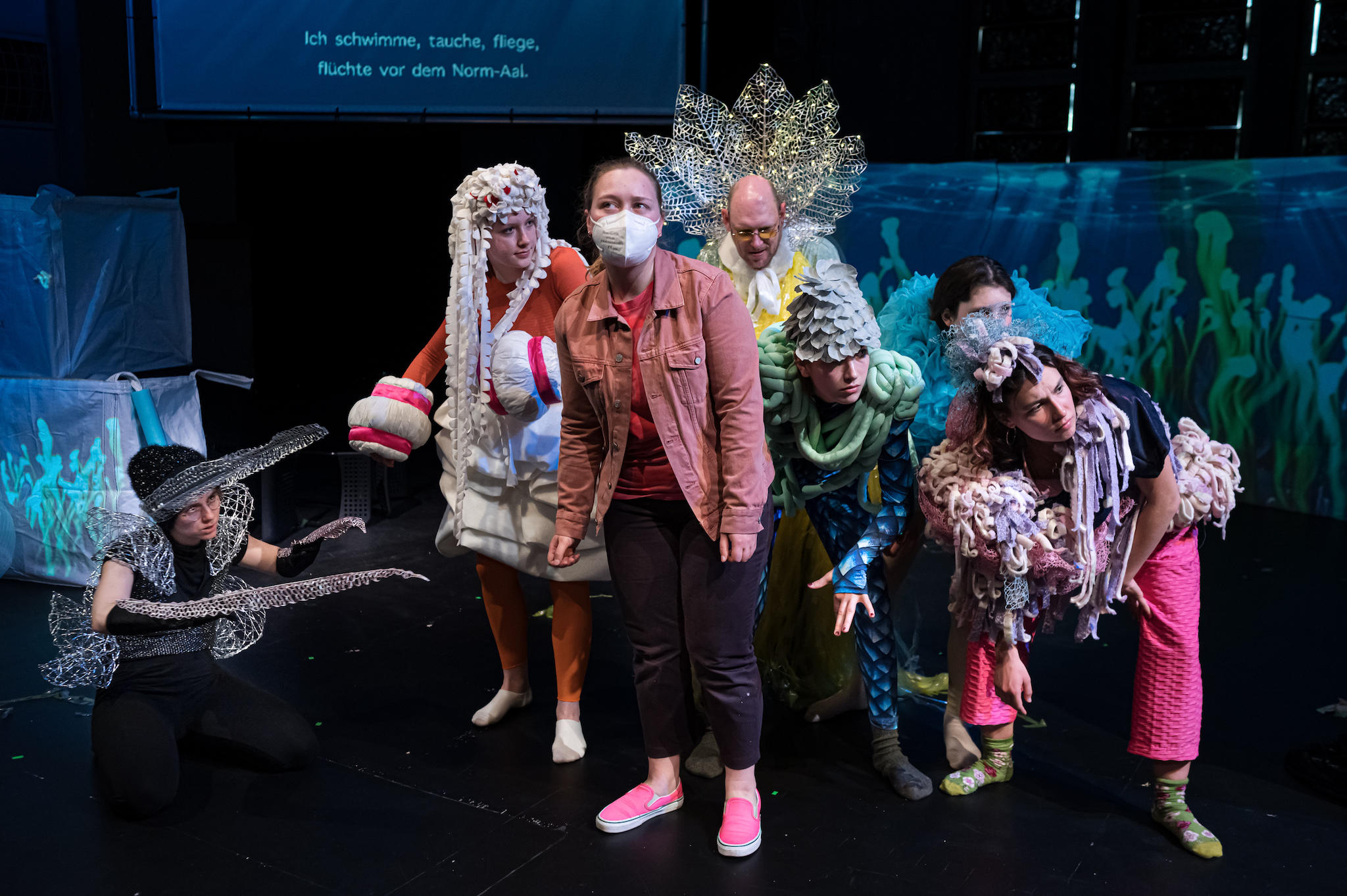 Eine partizipative Stückentwicklung von Ensemble Angestrahlt mit Kostümen von Ensemble Angezogen.